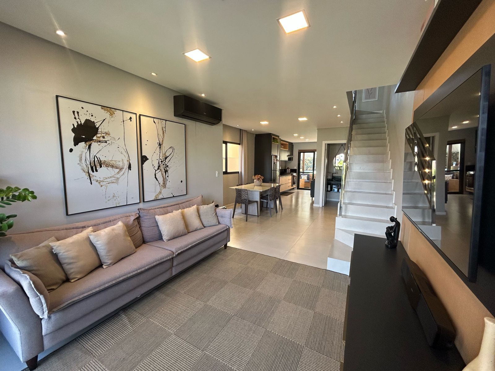 O imóvel conta com 3 dormitórios, sendo 1 suíte, além de lavabo, banheiro social, área de serviço e 2 vagas de garagem. O acabamento valoriza cada detalhe, com móveis sob medida, piso vinílico de alto padrão e aquecimento a gás.